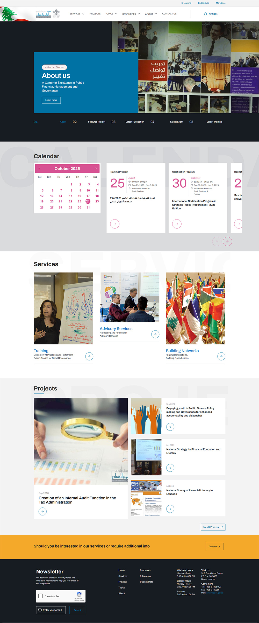 The Institut des Finances, center of excellence specialized in Public Financial Management and Governance, was founded in 1996, shortly after the end of the civil war, in cooperation with the French Government as a bilateral cooperation project to build capacities in public financial management and improve fiscal transparency in support of the rehabilitation and recovery of Lebanese public sector.